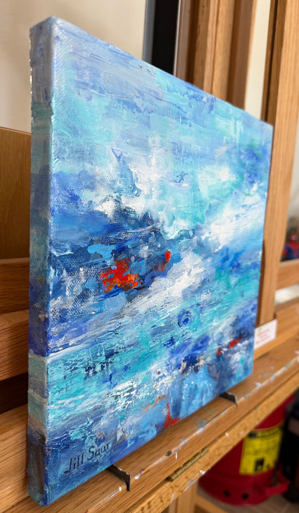Original Abstract Seascape Acrylic Painting On Canvas by Jill Saur 10"x 10"x .75"